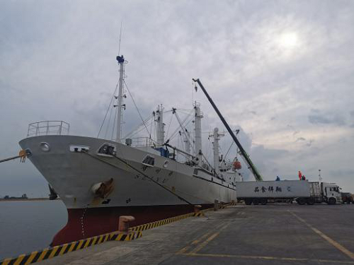 近日,在威海港引航站引航员的精心引领下,韩国籍冷藏船“诚裕”轮稳稳靠妥沙窝岛中心渔港1号泊位,这也是该码头迎来的首艘外籍船舶。