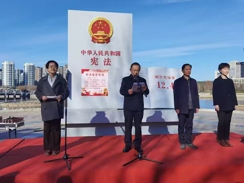 12月3日,文登区交通运输局参加文登区在法治文化公园举行的宪法宣誓活动。宣誓人员在宪法广场,严整肃立,高举右拳,面对宪法雕塑上熠熠生辉的国徽庄严宣誓,“我宣誓:忠于中华人民共和国宪法,维护宪法权威,履行法定职责……”。铮铮誓言,既是宣誓人对宪法作出的庄严承诺,也是维护宪法权威、捍卫公平正义的决心。