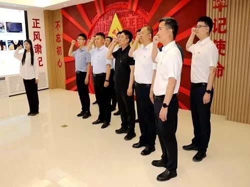 在威海海高园廉政警示教育展厅,一组组触目惊心的图文、一个个引人深思的案例,一句句发自肺腑的忏悔,让大家深刻认识到了违纪违法行为给党和国家事业以及自身造成的严重危害,更感受到了党中央全面从严治党和反腐治腐的坚定决心和有力举措,为全体党员敲响了拒腐防变、正风肃纪的警钟。最后,全体党员面对党旗,庄严地举起右拳,重温入党誓词,以铮铮誓言表达永远跟党走的信念和决心。