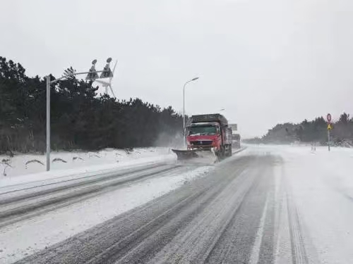 雪情发生后,迅速组织人力、物力和机械设备开展除雪防滑工作,对受降雪影响较大的S201威东线、S202威青线、S301成初线等干线公路,增加力量投入,重点加大急弯陡坡、重要桥梁等路段的巡查力度,及时撒布防滑砂等物资,并在重要桥梁和易冰冻路段设置了减速慢行等警示标志。截至1月9日17时,累计投入203.5台班(其中清雪车111.5台班、融雪剂洒布车58.5台班、装载机30.5台班、吊车2台班、平地机1台班),保障车辆48台班,除雪人员 316 人次,撒布融雪剂932吨,我市普通国省干线公路均保持安全畅通。