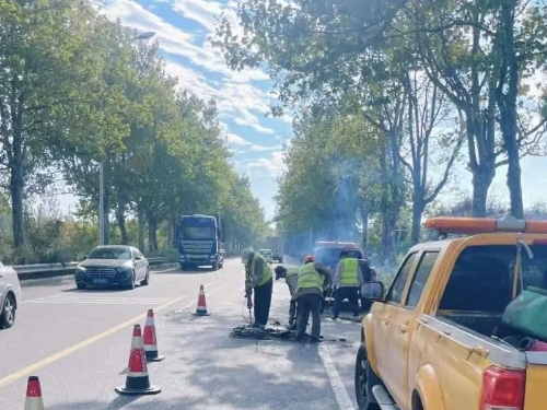 病害处治上,养护团队开展拉网式巡查,全面排查路面坑槽、裂缝及标线磨损情况。严格按规范开展修补与灌缝作业,及时复划模糊标线,确保道路平整、标线清晰。截至目前,已完成路面坑槽修补6946平方米,路面灌缝24806延米。