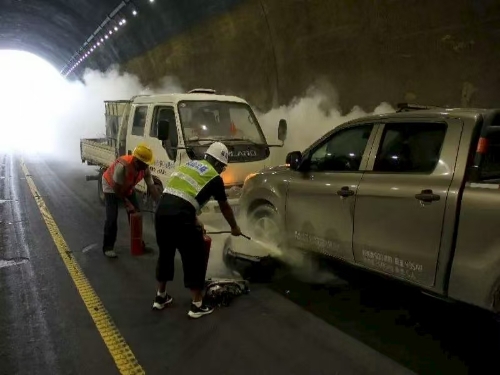 事故发生后,巡查人员第一时间发现并上报,随即启动应急预案,迅速联络各相关部门,组织各类应急抢险队伍赶赴现场,实施救援工作。各队伍到达现场后,应急救援工作迅速展开。中心工作人员协助交警部门快速在隧道出入口及周边路段设置警示标志,实施交通管制,引导被困人员从隧道两侧有序撤离至安全区域,科学制定绕行路线,及时疏导社会车辆;公路应急抢险人员在灭火的同时,清理通道障碍,优先开辟人员救援通道,并引导消防救援人员进入救援;火情得到控制后,养护人员开展清扫保洁作业,检查并修复因火灾或救援损坏的交安设施。整个演练过程持续30分钟,共投入人员58名、出动各类车辆和救援设备23台(套)。