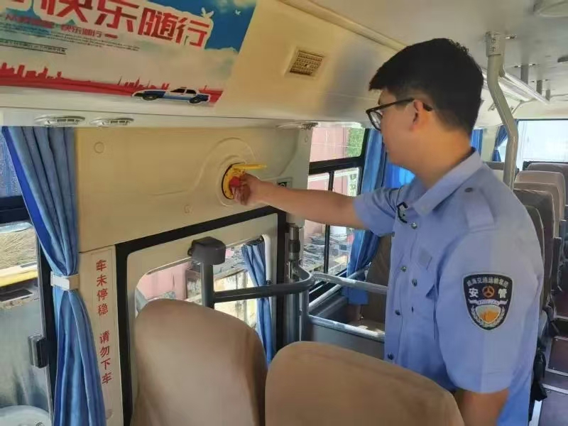 坚持"标准不降、程序不减"原则,现场审验工作人员依据审验规范对车辆安全设施进行全面排查,重点检查客运车辆的防滑链和防滑沙等应急设备、安全告知视频播放系统、应急门安全阀和灭火器等消防设施,以及安全带、车身外观等关键部位。对发现的问题实行"清单管理、限期整改、闭环销号",确保营运车辆技术状况达标,切实保障运营安全。