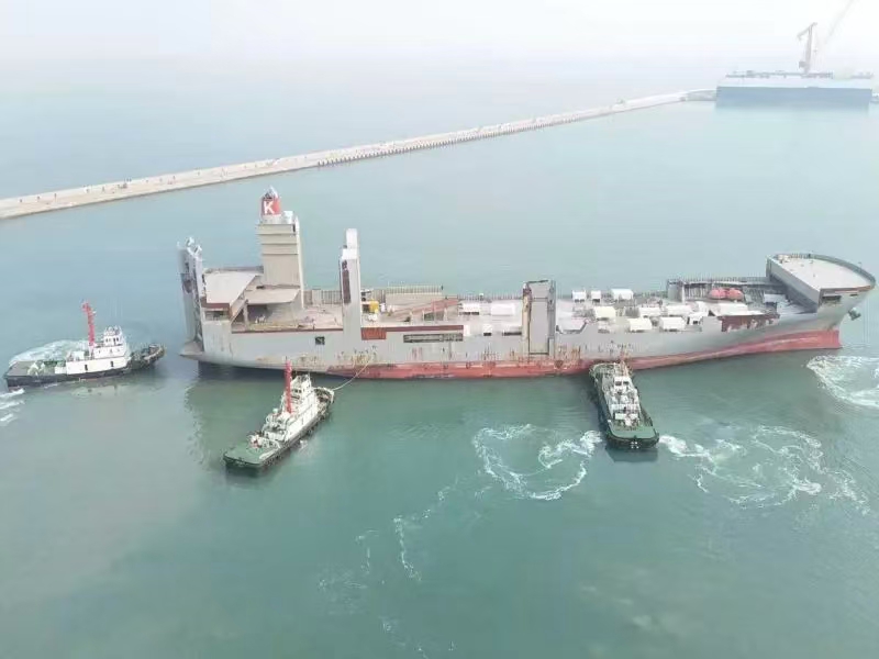 据悉,该轮船长199.97米、船宽32.36米,无自主动力及电力供应,绞缆设备无法启用,全程需拖轮协同操控,且船体受风面积大、航向稳定性差,引航操作难度极高。加之石岛港和兴船厂港池狭窄、回旋空间有限,而6-7级东北风将至的气象预警,进一步压缩作业时间,任务面临多重压力。
