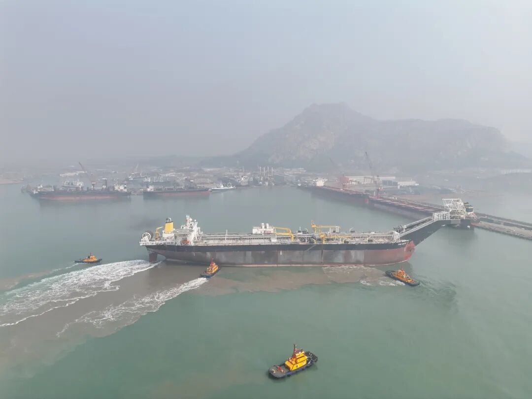 3月27日10时15分,随着一声嘹亮的汽笛,全球知名能源企业道达尔能源(TotalEnergies)旗下的“北方之珠”(FSO UOTE 1)轮,在威海港引航站石岛分站两名资深引航员的精准引领下,安全靠妥石岛鑫弘重工船厂,标志着此次超大型特种船舶引航任务圆满完成。